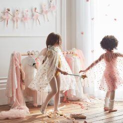 Esta maravillosa capa blanca quedará increíble para fiestas o juegos imaginativos. Está confeccionado con tul suave con preciosas estrellas doradas brillantes para un efecto brillante.